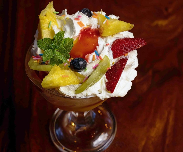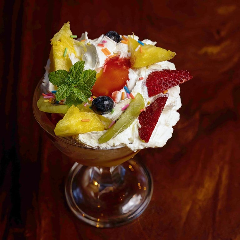 Passion Fruit Sorbet, Mango Sorbet, Pineapple, Kiwi, Chantilly Cream, Red Fruit Coulis : 220