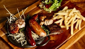 Beef Steak, Pork Tenderloin, Chicken, Merguez Sausage, Pork Sausage, French Fries & Salad : 890