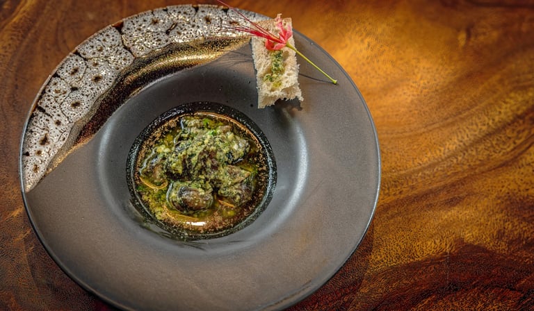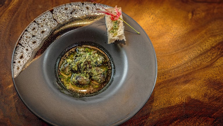 Plump, Imported French Snails, Cooked in Garlic Butter & served with Bread : 420