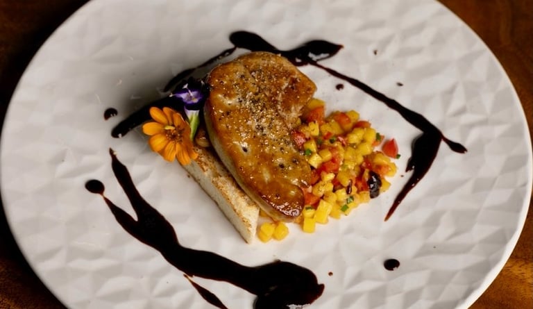 Pan-Fried with Fig Jam, Mango & Balsamic Dressing : 690