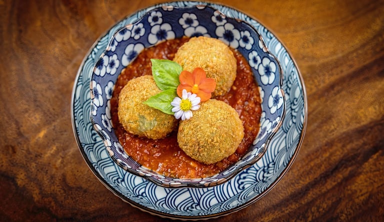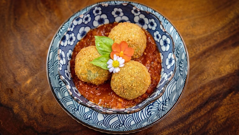 Risotto Rice Balls with Mozzarella and Pesto : 230