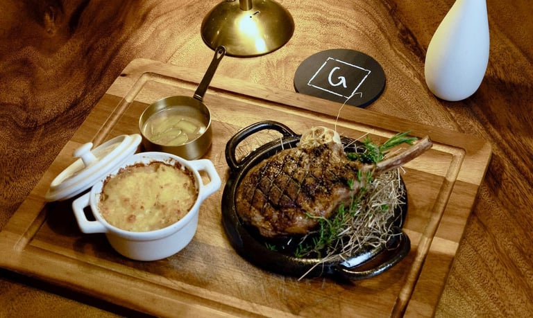 1.6kg to share - 6 hours slow cooked. Served with Sautéed Potatoes, Brussel Sprouts and Sautéed Mushrooms : 1,300