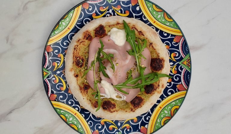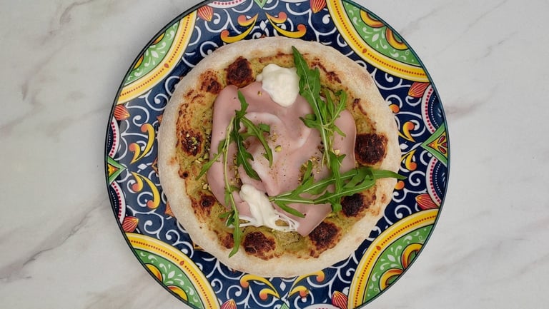 Mortadella, Pistachio Pesto, Mozzarella, Ricotta, Rocket : 220