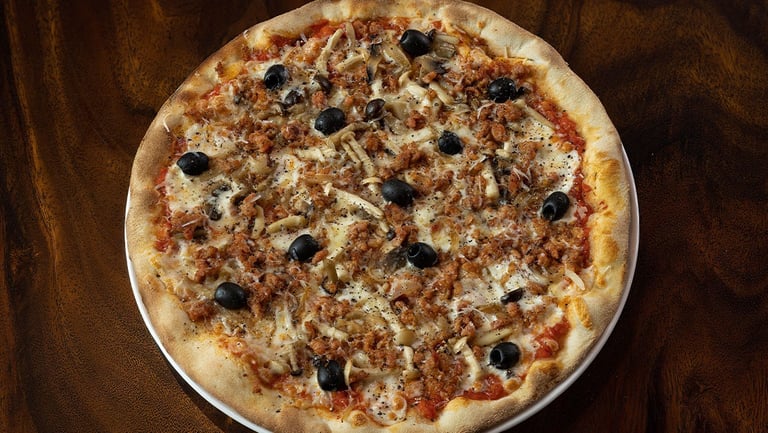 Spicy Italian Salsiccia Sausage, Mushrooms, Mozzerella, Onions, Black Pepper, Pecorino Cheese : 450